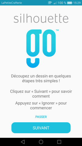 À la prochaine utilisation de Silhouette Go, vous pourrez directement sauter ce tutoriel en appuyant sur le bouton Passer.