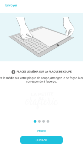J’ai décidé d’utiliser du vinyle blanc brillant pour décorer ma trousse noire. Je le place donc sur mon tapis de coupe. Il ne reste plus qu’à suivre les instructions pour l’envoi de la découpe.